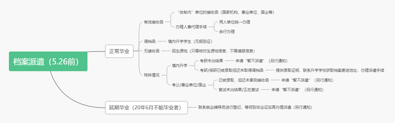 请毕业生严格按照接收函信息,于2020年5月26日24点前,在“广东大学生就业创业”的“就业派遣”栏填写派遣方案。
