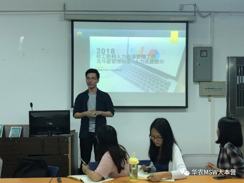 梁国勇先生有着丰富的社工机构管理经验,他也是华农MSW的优秀校友。在沙龙中,他结合自身的工作经验,通过介绍北斗星机构的机构历史,机构项目及人员状况,机构文化,组织架构,人力资源方面的工作,相关制度及流程等几个方面,以机构管理者的身份来和同学们进行交流分享。