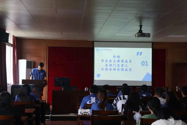 会议伊始,由主持人介绍主席团成员和各部门负责人和参与评议的团委负责人。三位主席团成员黄青青、陈悦潼、毛樱筱分别就思想引领培育优良作风、组织建设深化职能改革以及学生会的成就、不足与展望展开述职,明确我院学生会接下来的工作方向,以党、团、学一体化的机制推动我院学生群体思想建设水平更上一层楼。