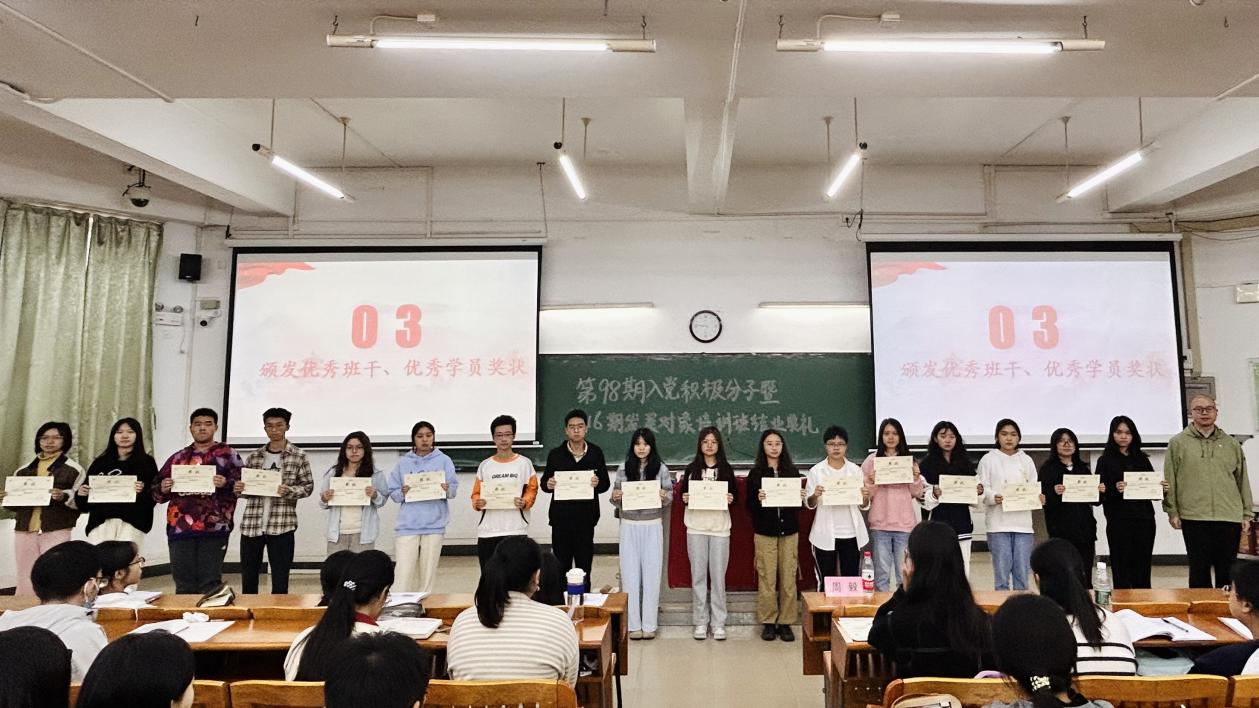 大会第三项,表彰先进。为鼓励学员们积极进取、学习先进,学院对党课的优秀班干、优秀学员进行表彰。周毅老师为优秀班干和优秀学员颁发奖状,并合影留念。