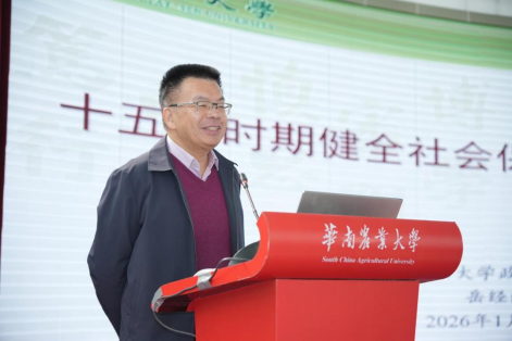 华南农业大学温小波副校长在致辞中指出,本次会议旨在构建一个汇聚政策制定者、实务工作者与学界专家的高层次对话平台,凝聚多方合力,共同助推广东省社会保险事业高质量发展。结合分管人事工作的切身经验,他强调社会保险政策专业性强、系统复杂,亟需深厚的学术研究为实务工作提供支撑,是一项兼具理论深度与实践要求的系统性工程。温小波介绍,华南农业大学依托多学科综合优势,借助城乡公共安全与数字治理实验室、社会保障与社会政策研究中心等省级平台,在社会保障、乡村治理等领域已形成扎实的研究基础。学校将以此次会议为契机,进一步强化社会保障领域的学科建设与人才培养,深化与政府部门、学术团体及行业机构的协同合作,持续为广东省社会保障事业发展注入“华农智慧”。